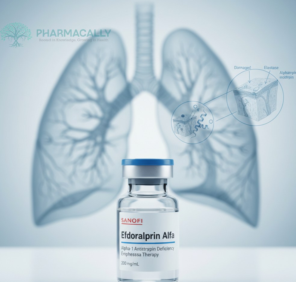 The drug works by inhibiting neutrophil elastase, an enzyme that causes lung tissue damage in individuals deficient in AAT. By blocking neutrophil elastase activity, Efdoralprin alfa provides a restorative therapy that protects lung tissue from progressive emphysema damage.